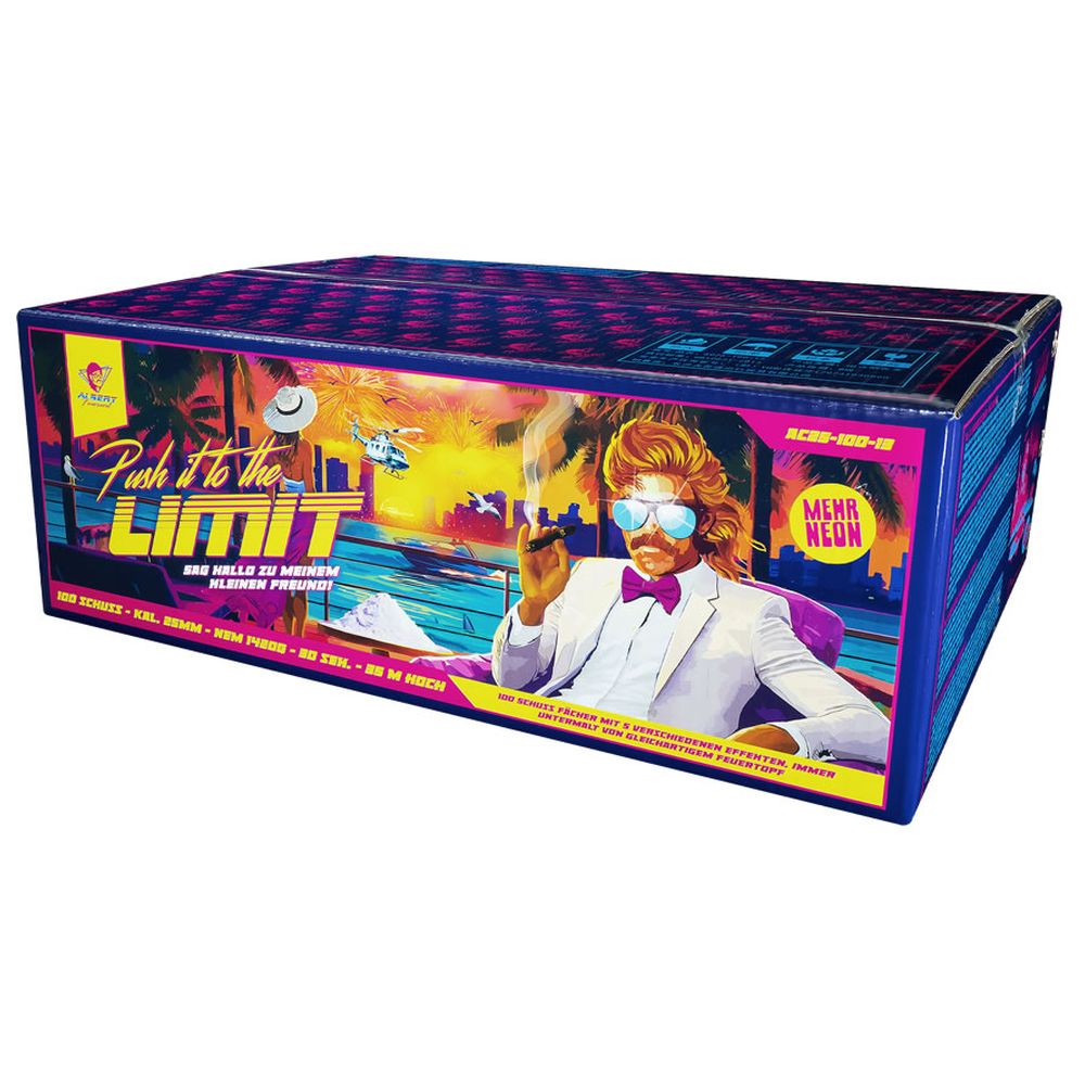100 Schuss Fächer aus den folgenden Effekten, jeweils als Feuertopf und Bukett: