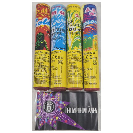 Fontänen sind die Meister der sprühenden Verwandlungskunst. Mit Ihren bunten Leuchtfarben, ihren knisternden Sternen und Pfeifen entfachen sie ein überirdisches Leuchtspektakel am Boden. Ob groß oder klein, jung oder alt – hier ist für jeden etwas dabei, um an Silvester seine Freude zu haben. Bodenfeuerwerk bringt nicht nur Kinderaugen zum Leuchten. Pure Lebensfreude und Lebenslust. Sei auch Du dabei.