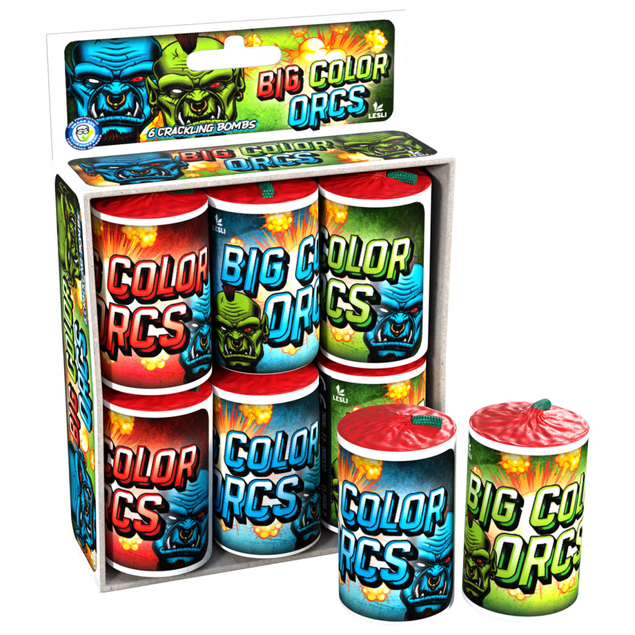 Extrem starke Crackling-Bombe. Mit einem Schlag zündet eine brutale Crackling-Wolke mit gigantischer Ausbreitung. Zusätzlich werden auch noch Farbsterne in Rot, Blau und Grün ausgeworfen.