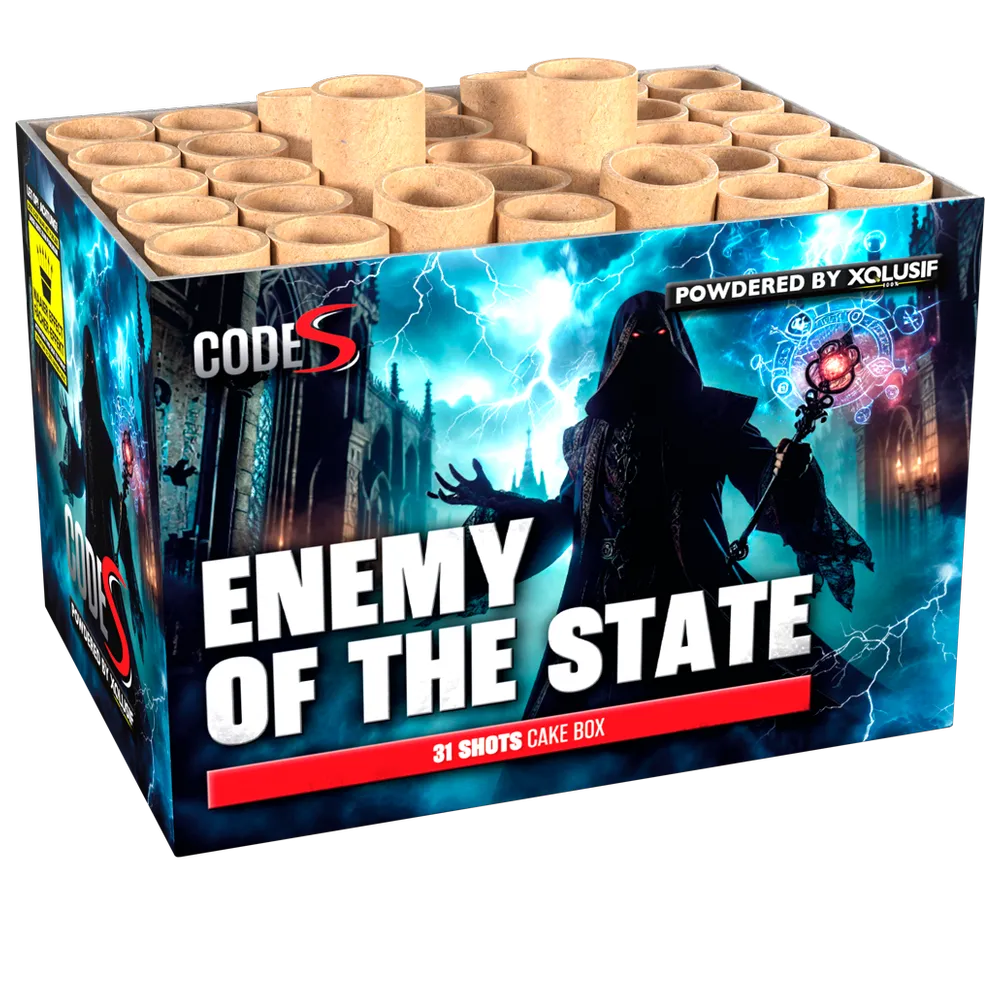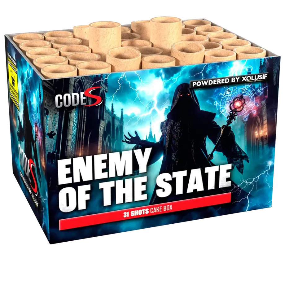 Enemy of the State ist eine 31-Schuss Powerbatterie, die dich auf eine spektakuläre Reise voller Farben und Effekte mitnimmt. Die geraden und gefächerten Abschüsse sorgen für eine dynamische und beeindruckende Show.