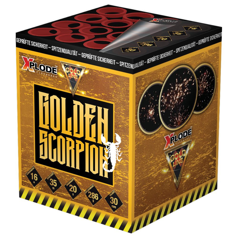 Blauer Kometenaufstieg zu Sternbuketts mit rauschenden Gold-Spider Chrysanthemen und roten und silbernen Blink-Sternen.