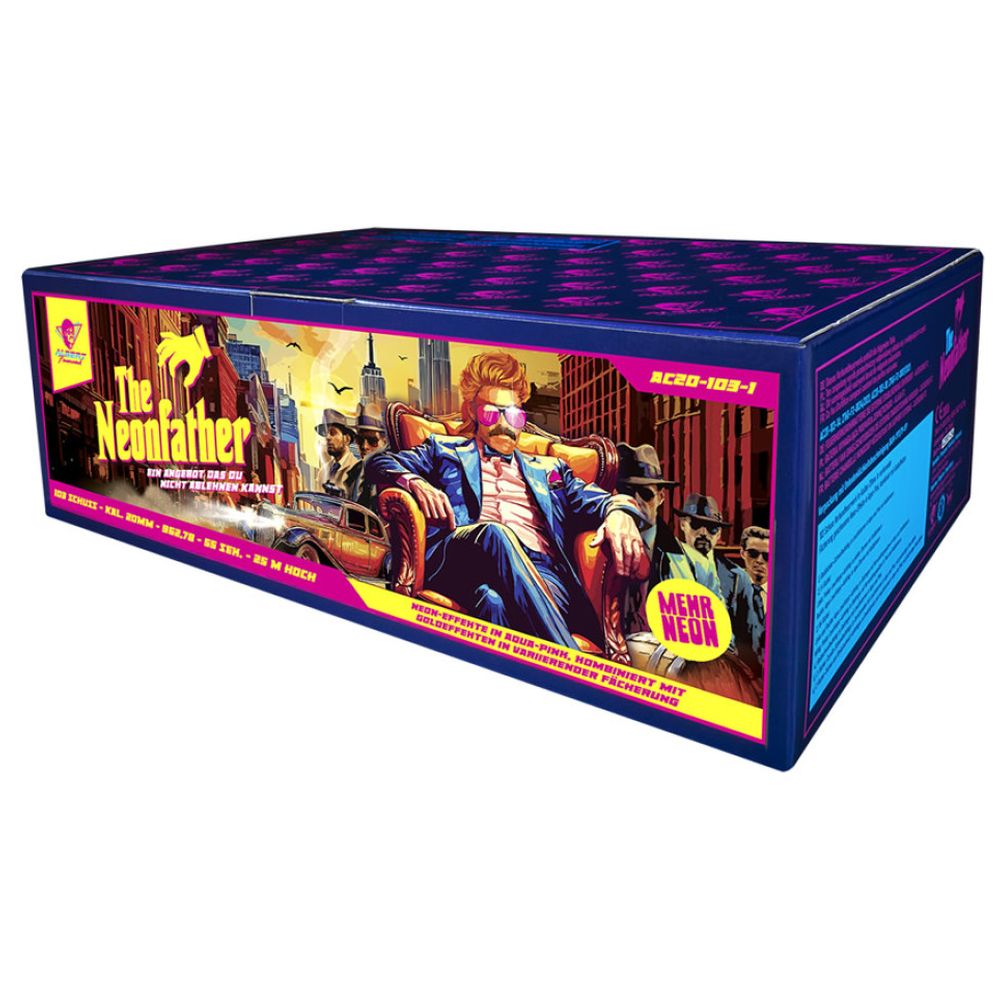 Mittig: Pinker Leuchtspur-Aufstieg zu Goldregen mit Verwandlungsspitzen in Pink und Goldblinkern;