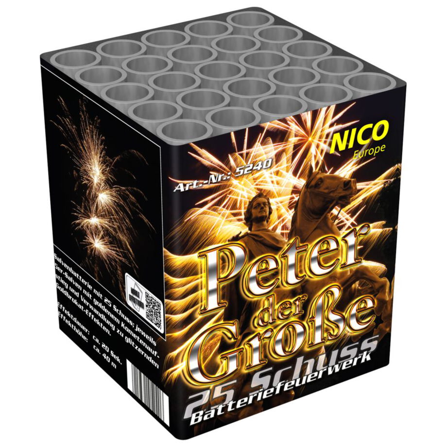 Abschüsse erfolgen in 5er Salven mit goldenem Kometenaufstieg und Verwandlung zu glitzernden Goldbrokat-Effekten.