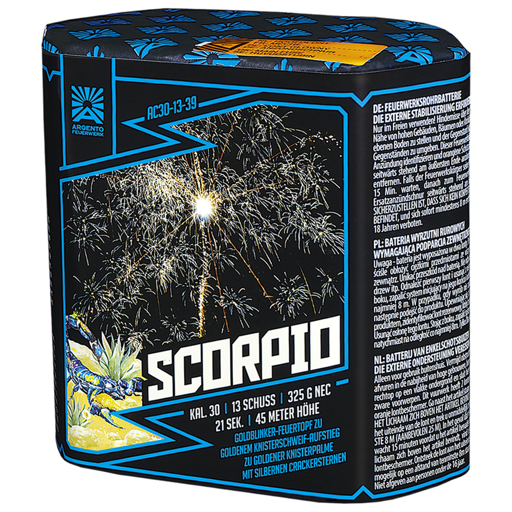 Goldblinker-Feuertopf zu goldenem Knisterschweif-Aufstieg zu goldener Knisterpalme mit großem Sternbukett aus Silbercrackern.