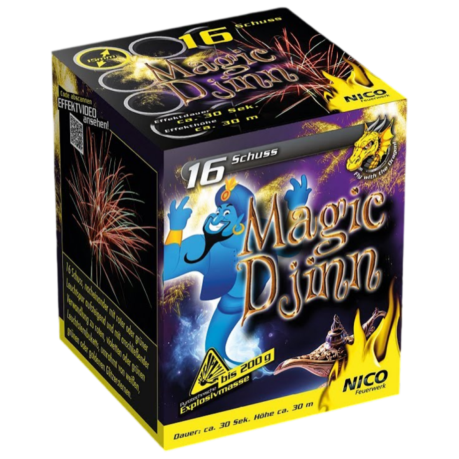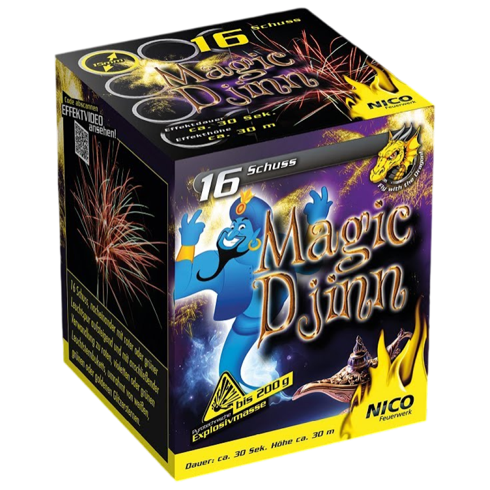 Roter und grüner Leuchtspur-Aufsteig mit Verwandlung zu roten, violetten oder grünen Leuchtbuketts, umrahmt von weißen, grünen oder goldenen Glitzersternen.