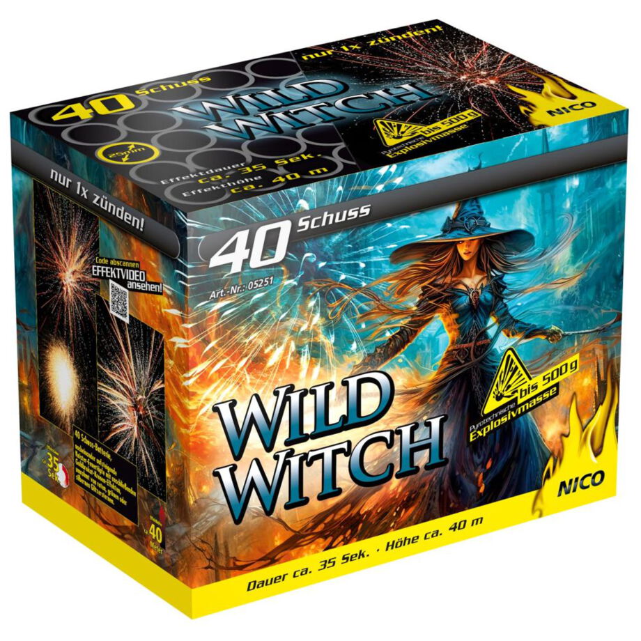 Knister-Feuertöpfe mit anschließenden Goldbrokat-Kronen-Effekten, umrahmt von roten, grünen oder silbernen Glitzersternen. Mit Final-Salve.
